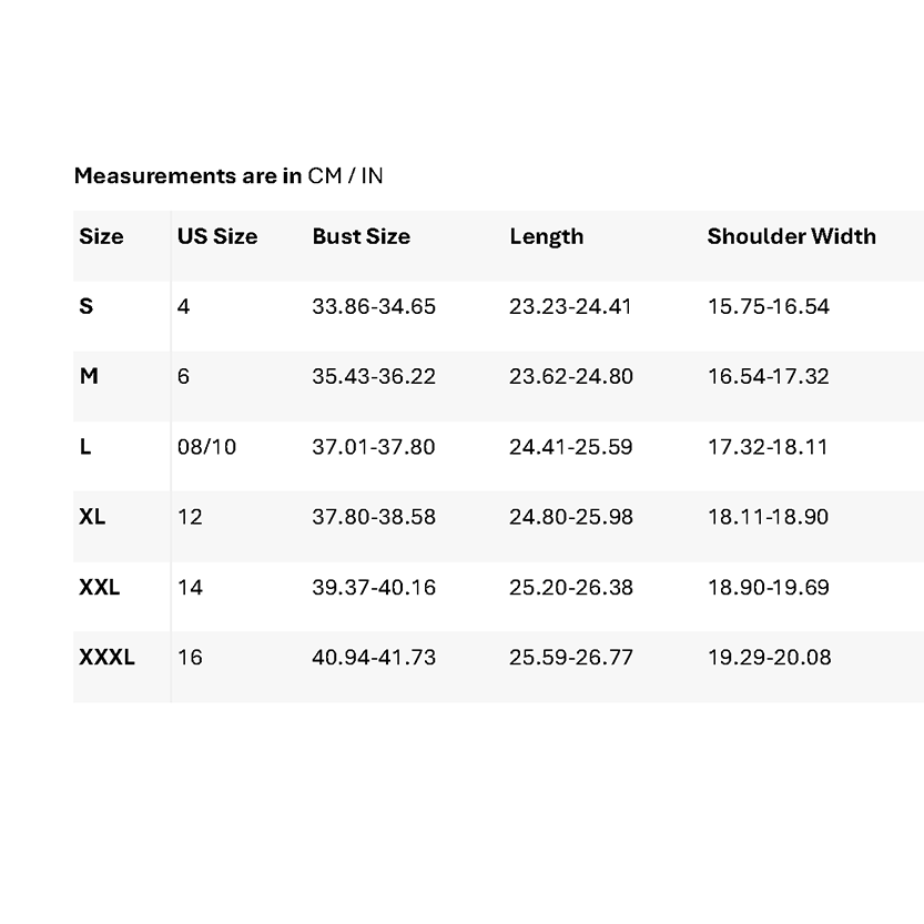 Please check the sizes below before ordering and refer to the measurements rather than the country sizing.