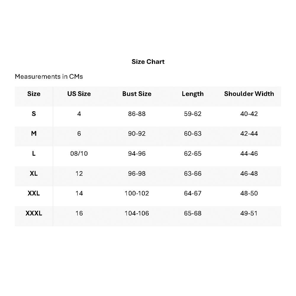 Please check the size chart below before ordering and refer to the measurements rather than the country sizing of S, M, L, XL, XXL etc. We recommend you allow for an additional 2-3cm / 0.78-1.18" variation due to manual measurement. (1.00 = 0.39 inch / 2.54cm = 1.00 inch).